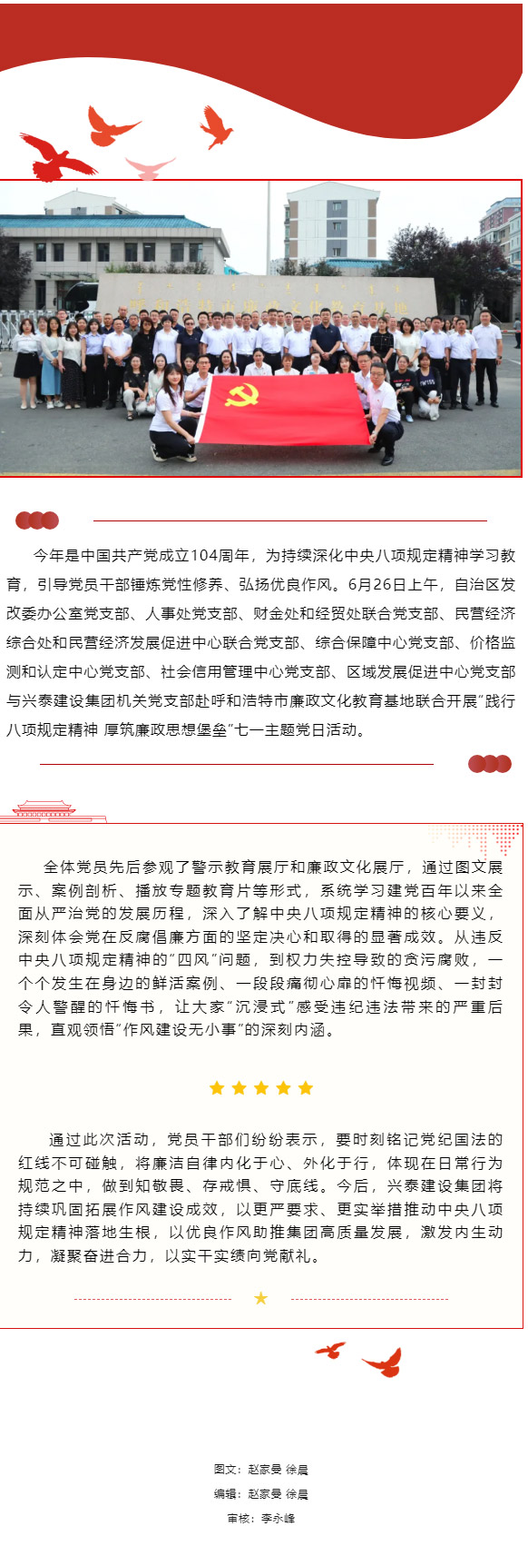 践行八项规定精神 厚筑廉政思想堡垒 | 兴泰建设集团机关党支部与自治区发改委部分党支部联合开展“七一”主题党日活动